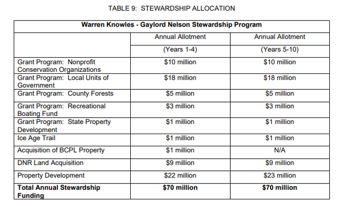 In addition to recommending an increase and reauthorization for the Stewardship program, the governor’s budget bill proposes numerous changes to the Stewardship Program – here are some key ones to note (as described in the bill’s summary provisions):